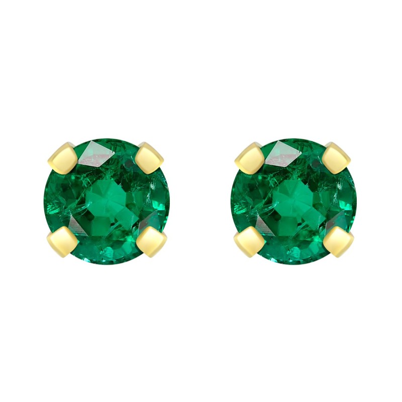 Boucles d'Oreilles Femme Puces OR 375/1000 Jaune et Emeraude
