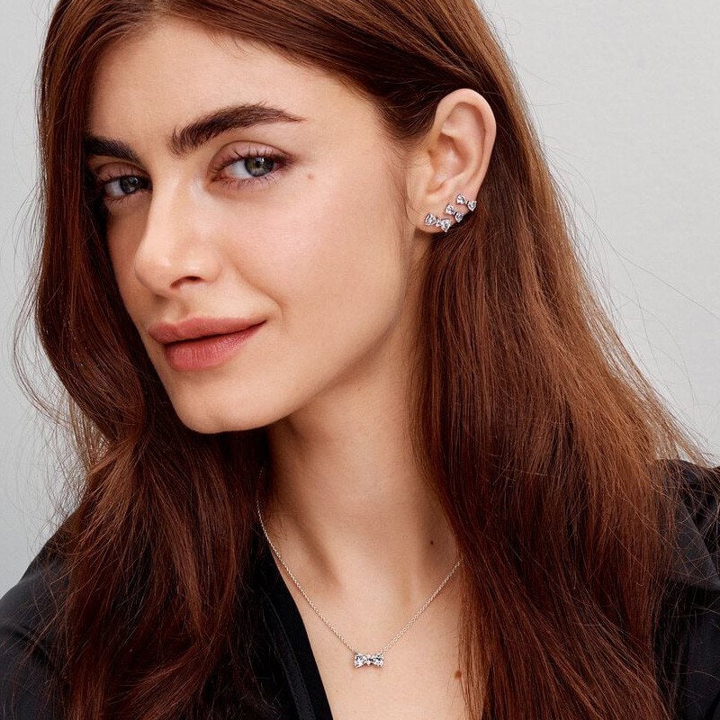 Boucles d'Oreilles Femme Puces Pandora ARGENT 925/1000 Nœud Scintillant 293542C01