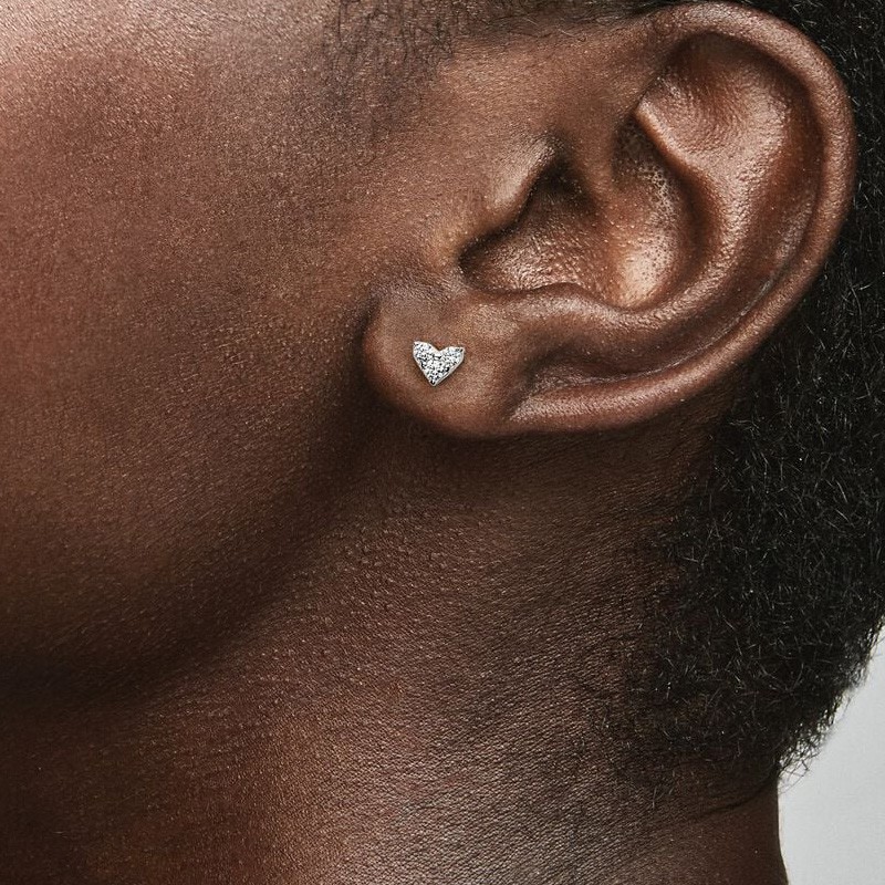 Boucles d'Oreilles Femme Puces Pandora ARGENT 925/1000 Cœur Trois Pierres 293003C01