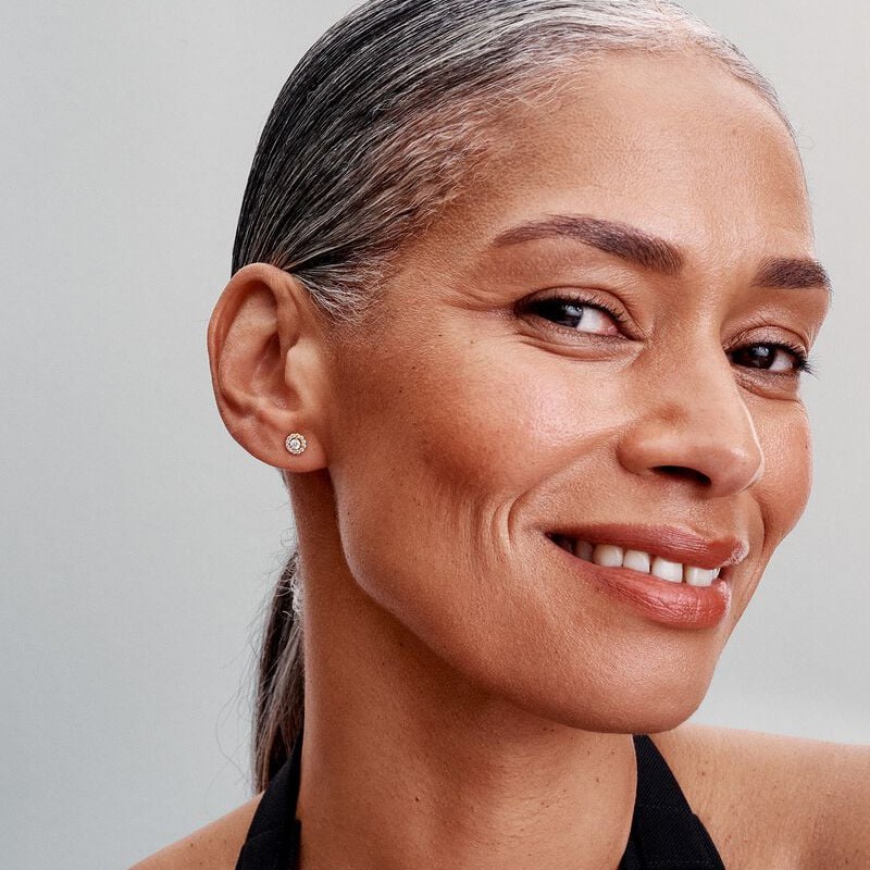 Boucles d'Oreilles Femme Puces Pandora Dorées Halo Pavé Rond 263019C01