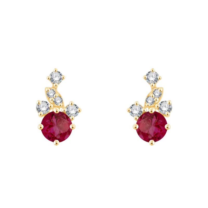 Boucles d'Oreilles Femme Puces CAVROIS Prima OR 750/1000 Jaune, Diamants et Rubis CE31488DRY