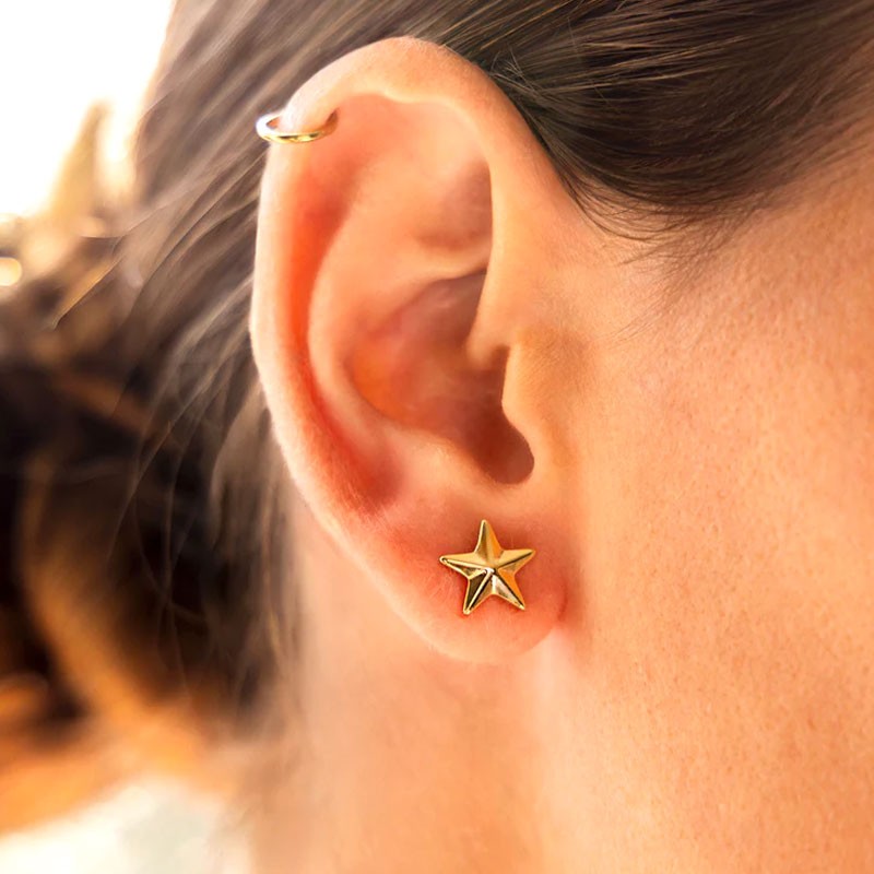 Ces puces d'oreilles sont fabriquées en acier inoxydable, garantissant leur robustesse et un éclat argenté durable. Le motif en étoile est l'élément central du design, avec des dimensions de 10 mm sur 10 mm. Leur forme en relief et leur fini poli captent magnifiquement la lumière. Elles se fixent avec un fermoir de type puce d'oreille classique, assurant un maintien sûr et confortable.