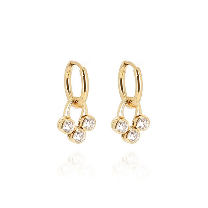 Le design de ces boucles d'oreilles repose sur l'attrait d'un pendentif raffiné : un arc de cercle suspendu à une petite créole, finement serti de trois zirconiums étincelants. Cette association apporte une touche de lumière et de préciosité à l'ensemble. Pensé pour être porté avec légèreté, ce bijou offre un confort optimal tout au long de la journée avec un poids de seulement 0,93 g par boucle.