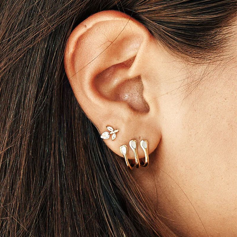 Le design de ces puces d'oreilles repose sur l'attrait d'une composition moderne : trois anneaux alignés créant un effet d'accumulation immédiat, chacun étant serti d'une petite nacre aux reflets irisés. Cette association apporte une touche de lumière naturelle et de caractère à l'ensemble. Simple et dans l'air du temps, ce joli trésor est parfait pour adopter un look rock tout en restant raffiné.