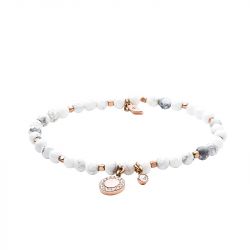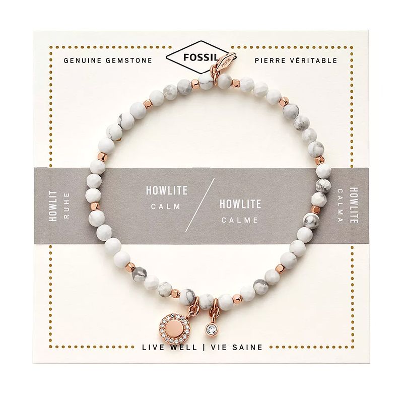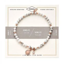 Le Bracelet Femme Fossil Acier Doré et Howlite Blanc JA6934791 allie élégance et sérénité. Ses perles de howlite blanche, réputées pour leurs propriétés apaisantes, sont associées à un délicat charm en disque doré, ajoutant une touche raffinée à l’ensemble. Avec sa longueur intérieure de 165 mm, ce bracelet épouse naturellement le poignet, idéal pour une tenue décontractée ou plus habillée. L'éclat doré de l'acier et la pureté de la howlite en font un bijou parfait à offrir ou à s'offrir. Retrouvez le Bracelet Femme Fossil Acier Doré et Howlite Blanc sur votre bijouterie en ligne EDORA.
