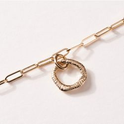 À la fois audacieux et délicat, le bracelet Saunier Alizée séduit par l’originalité de sa maille et le caractère de son pendentif texturé. Réalisé en plaqué or jaune, il marie élégamment maillons allongés et anneau martelé, pour une allure résolument contemporaine et féminine. Chaque détail évoque un style affirmé, entre finesse artisanale et design moderne.