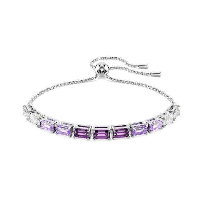 Le Bracelet Femme Swarovski Matrix Argenté et Cristaux 5707199 séduit par son allure délicate et son éclat sophistiqué. Confectionné en métal rhodié, il révèle une teinte violette captivante, sublimée par un dégradé de Swarovski Zirconia facettés avec une extrême précision pour refléter chaque rayon de lumière.