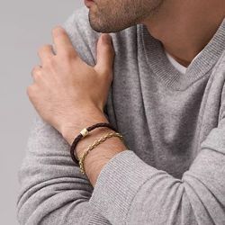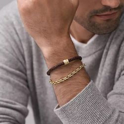 Le Bracelet Homme 21.9CM FOSSIL ALL STACKED UP Cuir Brun allie sophistication et robustesse, parfait pour l'homme moderne. Ce bracelet sophistiqué associe un cuir brun élégant avec des détails en acier inoxydable couleur or, offrant un look à la fois raffiné et masculin.