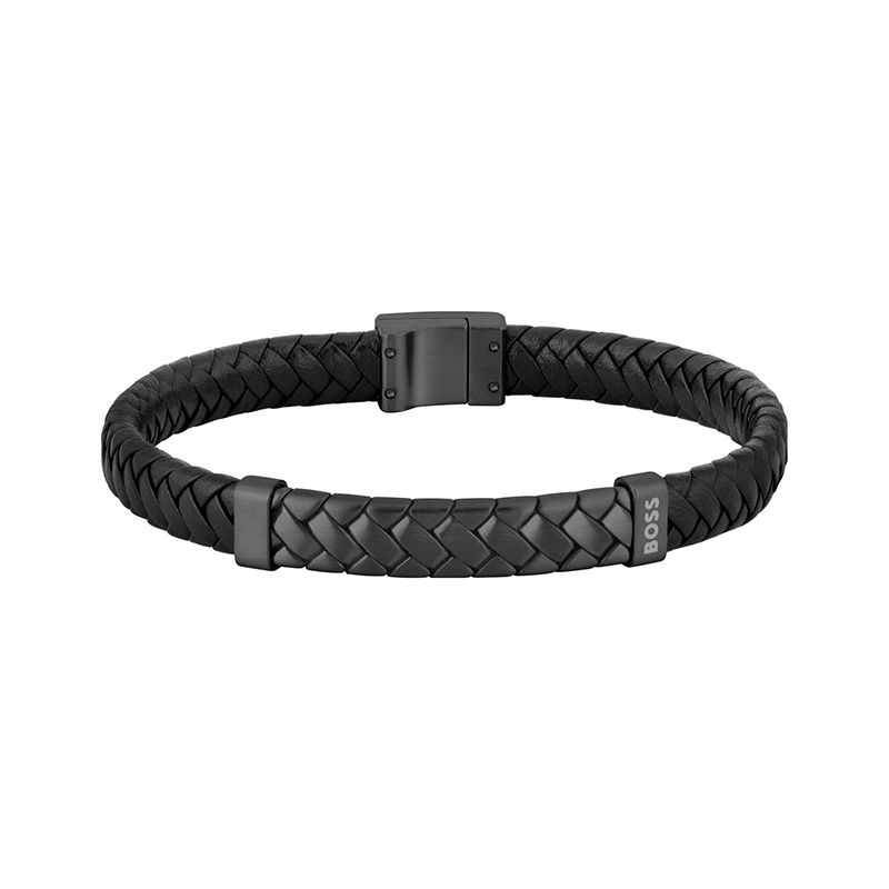 Bracelet Homme BOSS Tailored Cuir Noir 1580676M, une pièce élégante qui incarne parfaitement le style contemporain et raffiné de la maison BOSS. Confectionné en cuir noir tressé de qualité, il est rehaussé de détails en acier noir pour un contraste subtil et masculin.