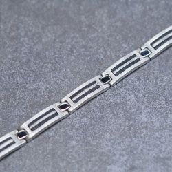 Le bracelet PHEBUS Sandro allie force et élégance avec son design sobre et contemporain. Conçu en acier inoxydable 316L blanc brillant et agrémenté de laque noire, il se distingue par son contraste subtil et raffiné, parfait pour un look masculin et affirmé.