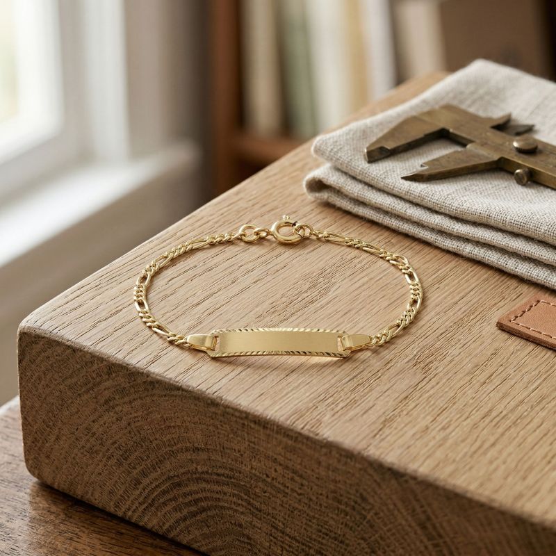 Bracelet Bébé Gourmette EDORA Or 375/1000 Jaune Maille Figaro EDO630003-13. Offrez à bébé un bijou empreint de tendresse avec cette gourmette en or jaune 375‰, conçue pour s'ajuster parfaitement aux petits poignets grâce à sa longueur de 13 cm avec un anneau intermédiaire à 11 cm. La plaque rectangulaire, idéale pour une gravure personnalisée, permet d’inscrire un prénom, une date ou un message affectueux, pour un souvenir unique et durable. Sa maille Figaro, à la fois élégante et résistante, et son fermoir anneau à ressort assurent une utilisation sécurisée au quotidien. Le poids moyen de 1,40 g garantit un port léger et confortable pour l’enfant. Retrouvez la Gourmette Bébé EDORA Or 375/1000 Jaune Maille Figaro EDO630003-13 sur votre bijouterie en ligne EDORA.