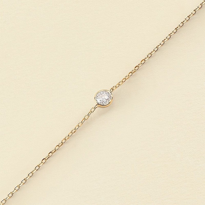 Le Bracelet Femme Brillant AGATHA ARGENT 925/1000 Doré et Oxydes 02490010-137-TU incarne la beauté des bijoux essentiels que l’on ne quitte plus. Confectionné en argent 925/1000 doré à l’or 750/1000, il se distingue par sa chaîne fine et épurée, sublimée au centre par un motif rond délicatement orné d’un oxyde de zirconium scintillant. Ce détail lumineux capte la lumière avec justesse, apportant un éclat subtil à votre poignet, parfait pour les femmes en quête d’un bijou discret mais plein de charme.