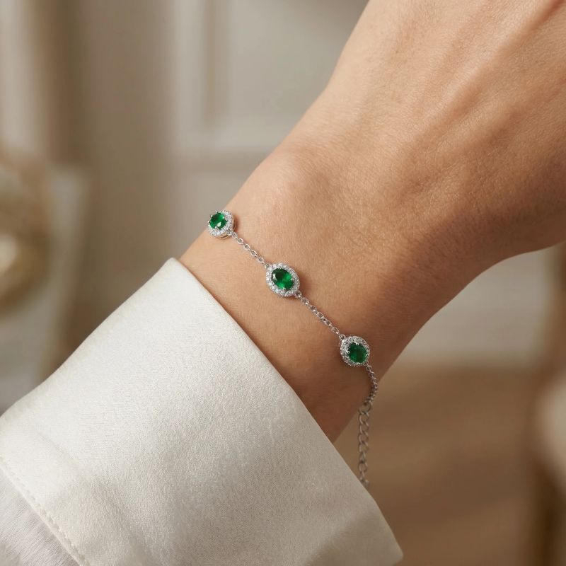 Bracelet Femme EDORA ARGENT 925/1000 Argenté et Spinelles Vertes 15-0206