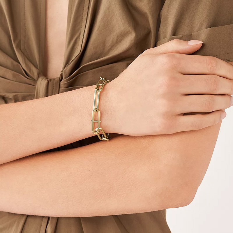 Bracelet Femme Chaîne FOSSIL Heritage D-Link Acier Doré JF04234710, une pièce moderne et élégante conçue pour sublimer votre poignet. Fabriqué en acier inoxydable doré, ce bracelet se distingue par ses maillons D-Link audacieux et son design contemporain. Avec une longueur de 190 mm et une largeur de 8,5 mm, il offre un ajustement confortable et sécurisé grâce à son fermoir mousqueton. Parfait pour compléter une tenue tendance ou pour offrir un cadeau chic et intemporel. Retrouvez le Bracelet Femme FOSSIL Heritage D-Link sur votre bijouterie en ligne EDORA