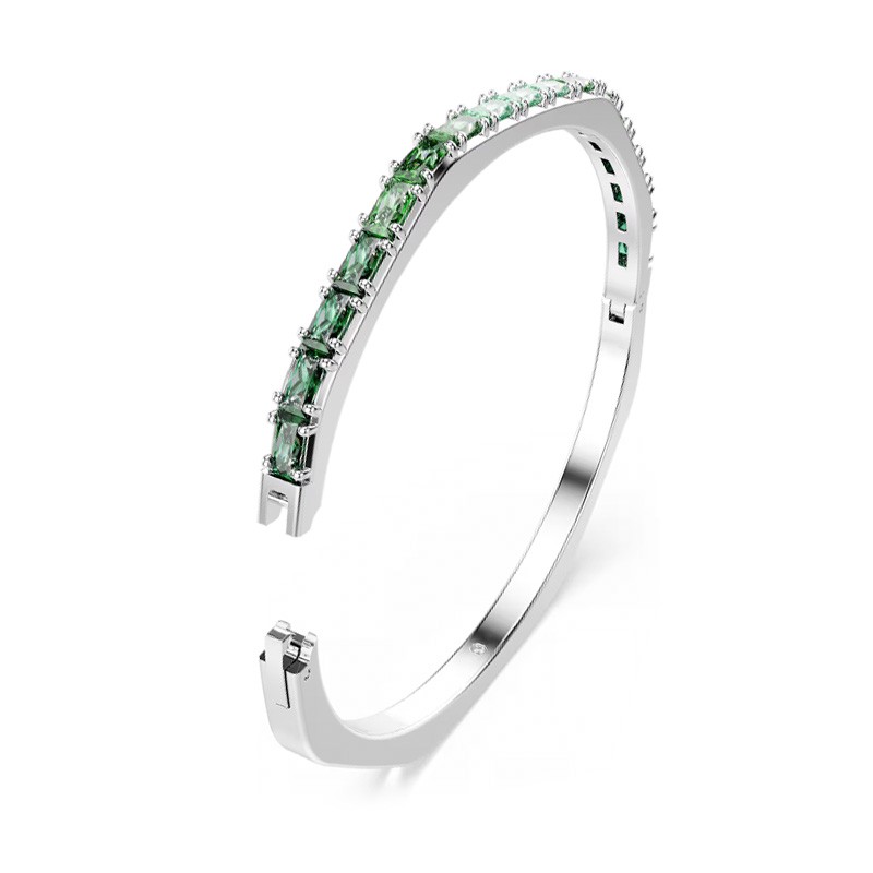 Bracelet Femme Jonc Swarovski Matrix Argenté et Cristaux 5705785, une pièce élégante et contemporaine qui illumine votre quotidien. Conçu en métal rhodié, ce bracelet-jonc à charnière arbore la forme octogonale emblématique de Swarovski. Il est sublimé par un dégradé de Swarovski Zirconia verts taille baguette, habilement sertis horizontalement pour une allure moderne et raffinée. Avec une longueur de 17 cm et un diamètre intérieur de 5.8 x 5 cm, ce bijou s’ajuste parfaitement grâce à son fermoir à rabat. Portez-le seul ou accumulez-le avec d’autres joncs de la collection Matrix pour un style audacieux. Retrouvez le Bracelet Femme Jonc Swarovski Matrix Argenté et Cristaux sur votre bijouterie en ligne EDORA.