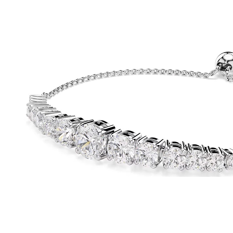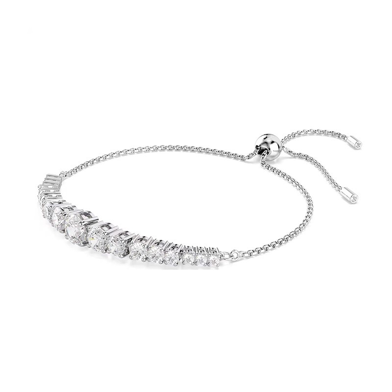 Bracelet Femme Swarovski Matrix Argenté et Cristaux 5690677, une création délicate et scintillante qui illumine votre poignet. Ce bracelet en métal rhodié met en valeur un dégradé de Swarovski Zirconia taille ronde, chaque cristal étant facetté avec précision pour capturer et refléter la lumière. Avec une longueur maximum de 24 cm et un motif central de 6.1 x 0.6 cm, il est équipé d’un fermoir à boule coulissante pour un ajustement sur mesure. Associez-le à des boucles d’oreilles ou un collier Matrix assortis pour une élégance complète. Retrouvez le Bracelet Femme Swarovski Matrix Argenté et Cristaux sur votre bijouterie en ligne EDORA.