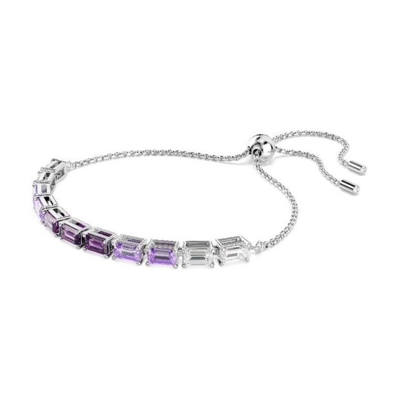 Le Bracelet Femme Swarovski Matrix Argenté et Cristaux 5707199 séduit par son allure délicate et son éclat sophistiqué. Confectionné en métal rhodié, il révèle une teinte violette captivante, sublimée par un dégradé de Swarovski Zirconia facettés avec une extrême précision pour refléter chaque rayon de lumière.