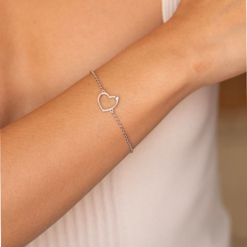 Son cœur ajouré, suspendu à une chaîne souple, évoque une déclaration tendre, un serment d’amour discret et sincère. Grâce à sa longueur ajustable (16+3 cm) et à son fermoir mousqueton, ce bracelet épouse parfaitement le poignet et s’invite avec douceur dans votre quotidien. Il appartient à la collection Délicate Entrevue, et incarne avec émotion un attachement profond.