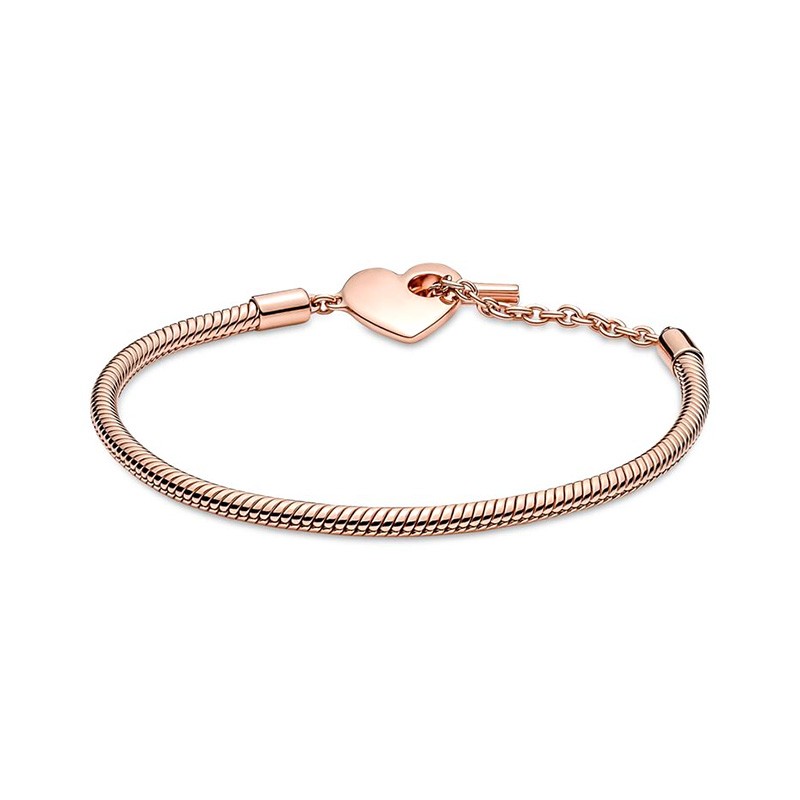 Bracelet Femme Pandora Moments Maille Serpent Barre en T Cœur 589285C00