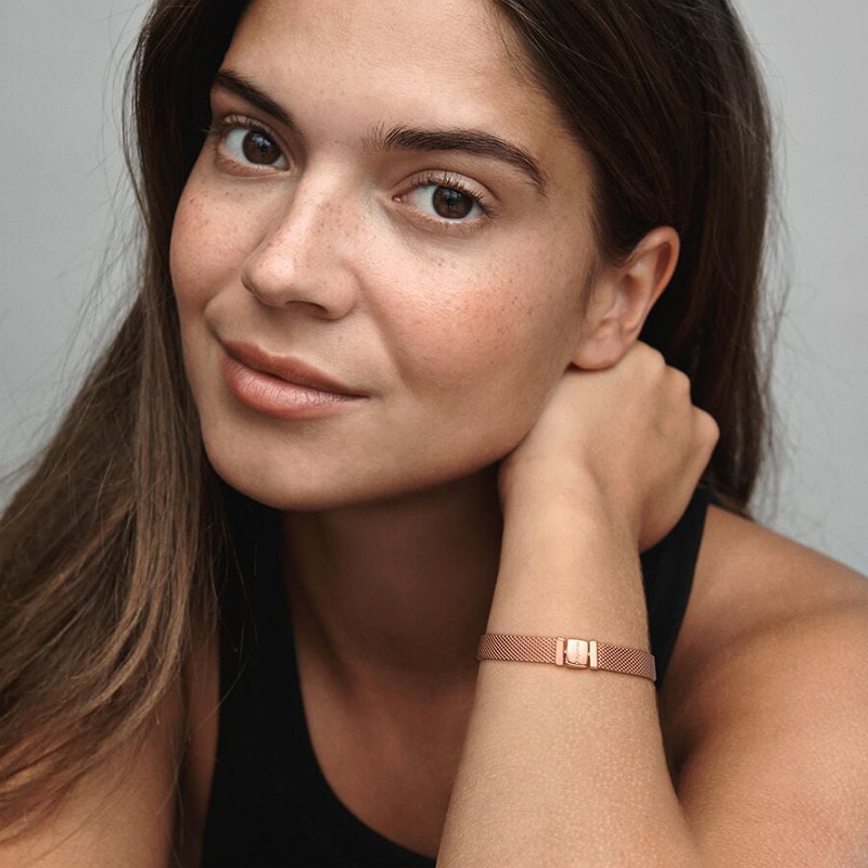 Bracelet Femme Taille 18CM PANDORA REFLEXIONS MAILLE TISSÉE Doré Rose 14 Carats