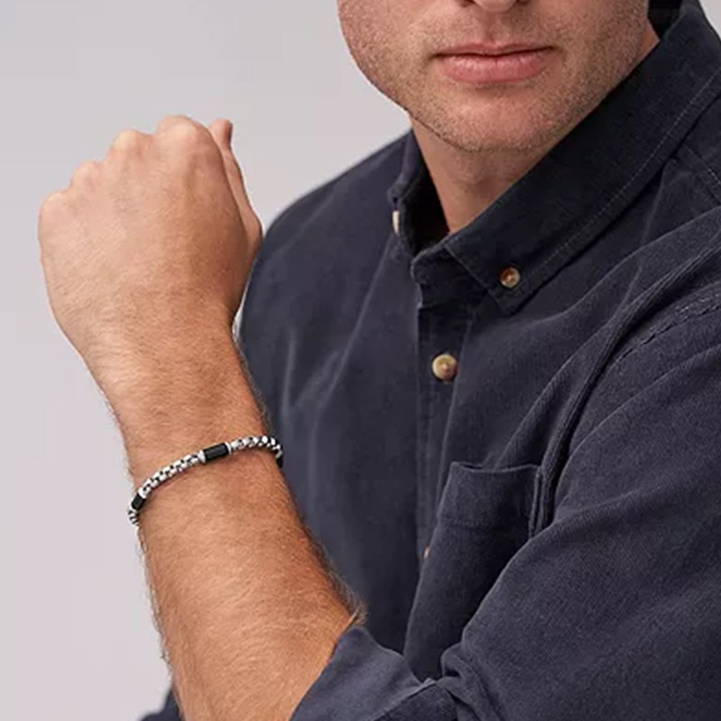 Bracelet Homme 19CM FOSSIL ALL STACKED UP Acier Argenté Agates Noires