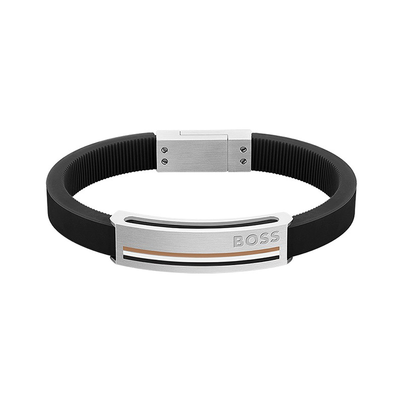 Le bracelet Boss Sarkis pour homme est un symbole de dynamisme et de modernité. Fabriqué en silicone noir flexible et rehaussé par des détails en acier argenté, il mesure 19 cm pour un ajustement parfait. Le fermoir magnétique offre une touche de praticité.