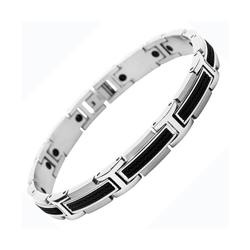 Élégance et modernité se rencontrent avec le bracelet homme Versus de ROCHET, une pièce raffinée qui allie la robustesse de l’acier argenté et la souplesse du silicone noir. Son design sophistiqué, composé de maillons rectangulaires en H de 9 mm de largeur, crée un jeu subtil entre textures et contrastes, idéal pour un style affirmé au quotidien.