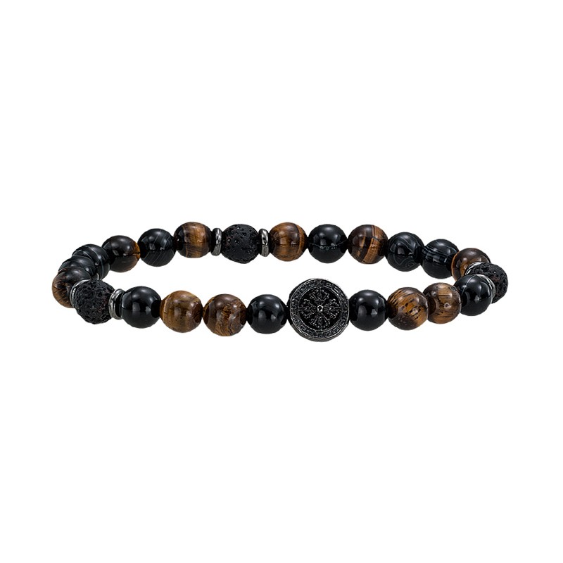 Composition : Oeil de tigre, perles noires