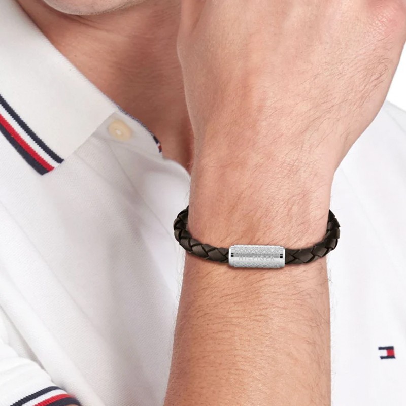 Le Bracelet Homme 19CM TOMMY HILFIGER EXPLODED Cuir Brun combine robustesse et style classique. Ce bracelet est finement conçu en cuir brun de haute qualité avec des accents en acier inoxydable argenté, offrant un look à la fois sophistiqué et durable.