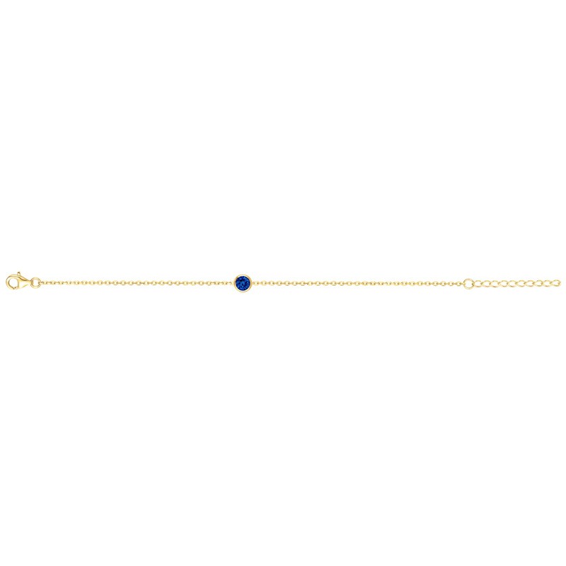 Ce modèle est réalisé en plaqué or, assurant une base durable et une couleur chaleureuse. La chaîne fine et épurée est ponctuée d'un unique oxyde de zirconium bleu d'un saphir profond, serti de manière délicate. L'absence de halo ou de multiples ornements attire toute l'attention sur la couleur vibrante de la pierre, créant un point focal chic et intemporel.