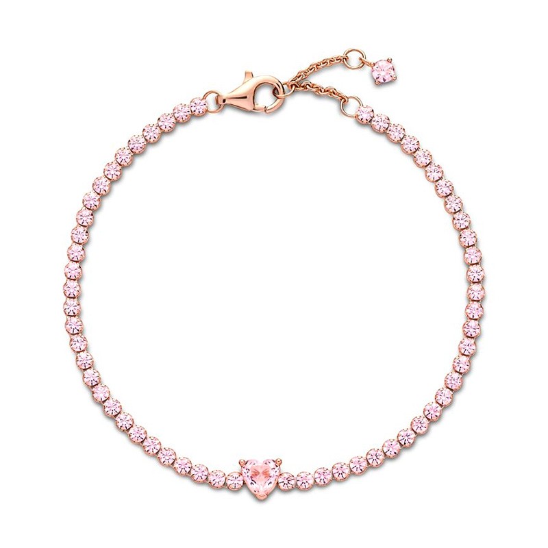 Découvrez un classique joliment revisité, ce bracelet rivière allie la douceur de l'or rose à l'éclat romantique de cristaux roses. Une grande pierre en forme de cœur vient ponctuer la rangée scintillante de détails pavés, créant une pièce captivante et pleine de féminité.