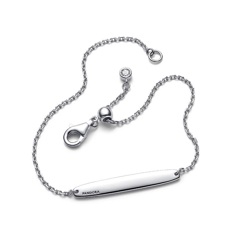 Fini à la main selon l'excellence Pandora, ce bracelet présente une chaîne fine qui met en valeur la barre gravable sans l'alourdir. L'argent massif 925/1000e assure durabilité et éclat, tandis que l'oxyde de zirconium apporte une touche de brillance discrète. La surface polie de la barre offre un espace idéal pour une gravure personnalisée, transformant ce bijou minimaliste en témoignage unique et personnel.