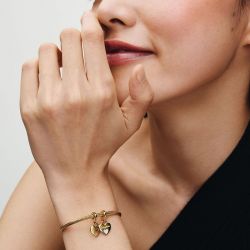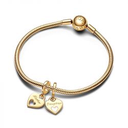 Un lien unique, deux cœurs pour l’incarner. Ce charm Pandora Moments, doré à l’or 585/1000e, célèbre l’amour indéfectible entre une mère et sa fille. Composé de deux pendentifs séparables, il est gravé des mots « Mother », « Daughter », « Forever » et « In my ❤️ », avec un délicat motif de cœur ajouré.
