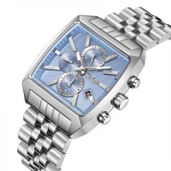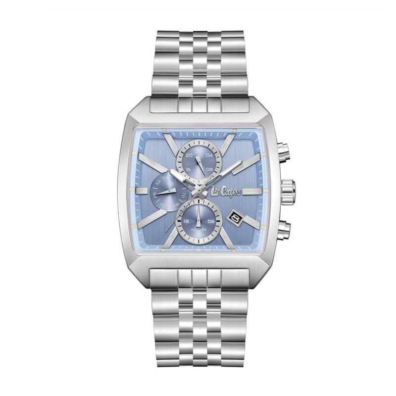 Affirmez votre style avec la montre Lee Cooper Lawrence, une pièce au design unique et contemporain. Son boîtier tonneau en métal argenté, d’une dimension équilibrée, dévoile un cadran bleu soleillé orné de trois compteurs multifonctions, pour une lecture claire et précise. Les index et aiguilles argentés viennent sublimer ce cadran, tandis que le bracelet en métal argenté à maillons multiples offre une finition sophistiquée, confortable et durable.