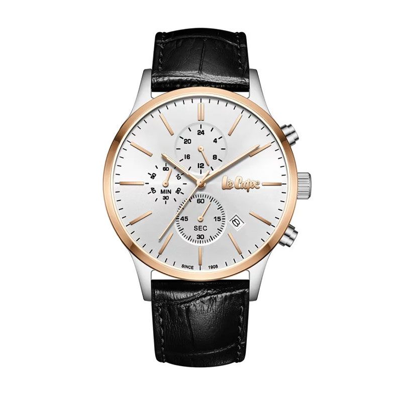 Fusion parfaite entre élégance intemporelle et sophistication contemporaine, la montre LEE COOPER Marvin LC08154.531 illumine votre poignet grâce à son cadran argenté lumineux subtilement rehaussé d’index dorés rosés et de compteurs chronographes parfaitement intégrés. L’affichage 24 heures et la date, finement agencés, renforcent la précision de ce garde-temps chic et raffiné.