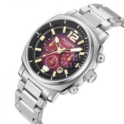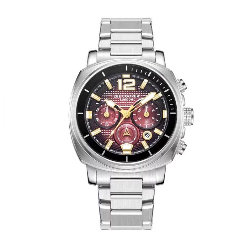 La montre Steven de Lee Cooper allie audace et élégance avec son cadran rouge profond contrastant magnifiquement avec le boîtier et le bracelet en acier argenté poli. Son boîtier circulaire de 43 mm offre une présence affirmée au poignet, tandis que la finition brossée du bracelet métallique, équipé d’une boucle déployante avec poussoir, assure confort et sécurité au quotidien.