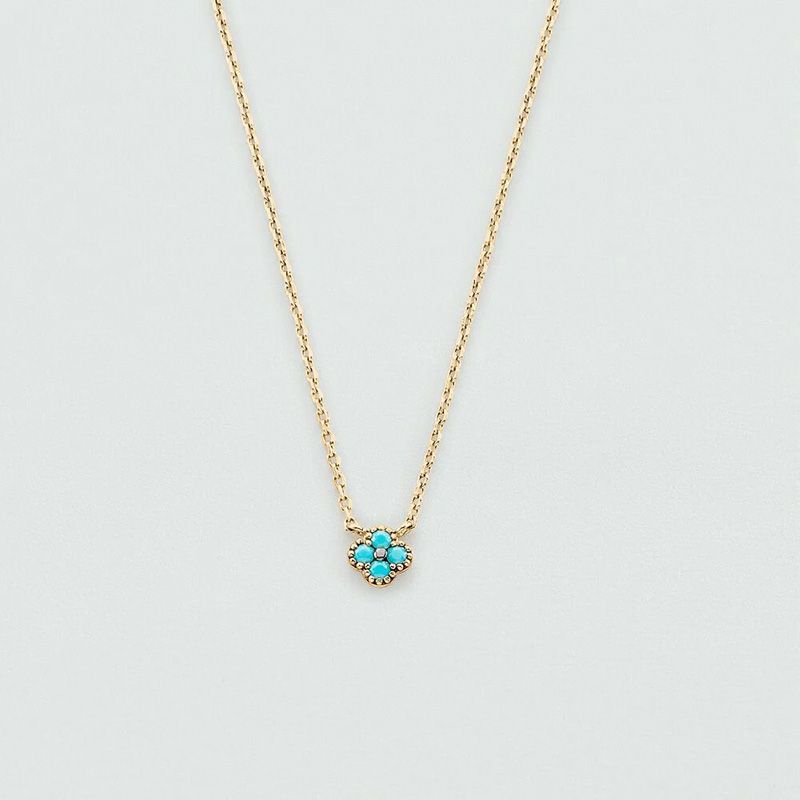 La touche unique de ce collier réside dans sa pierre centrale turquoise, rehaussée par des détails minutieux, qui lui confère une fraîcheur et un éclat singuliers. Avec un poids léger de 2 grammes et des dimensions étudiées (largeur et longueur de 37,5 cm), il s’adapte parfaitement au cou, soulignant le décolleté avec subtilité et grâce. Son design moderne tout en restant intemporel en fait un incontournable pour les femmes cherchant à allier tradition et contemporanéité.
