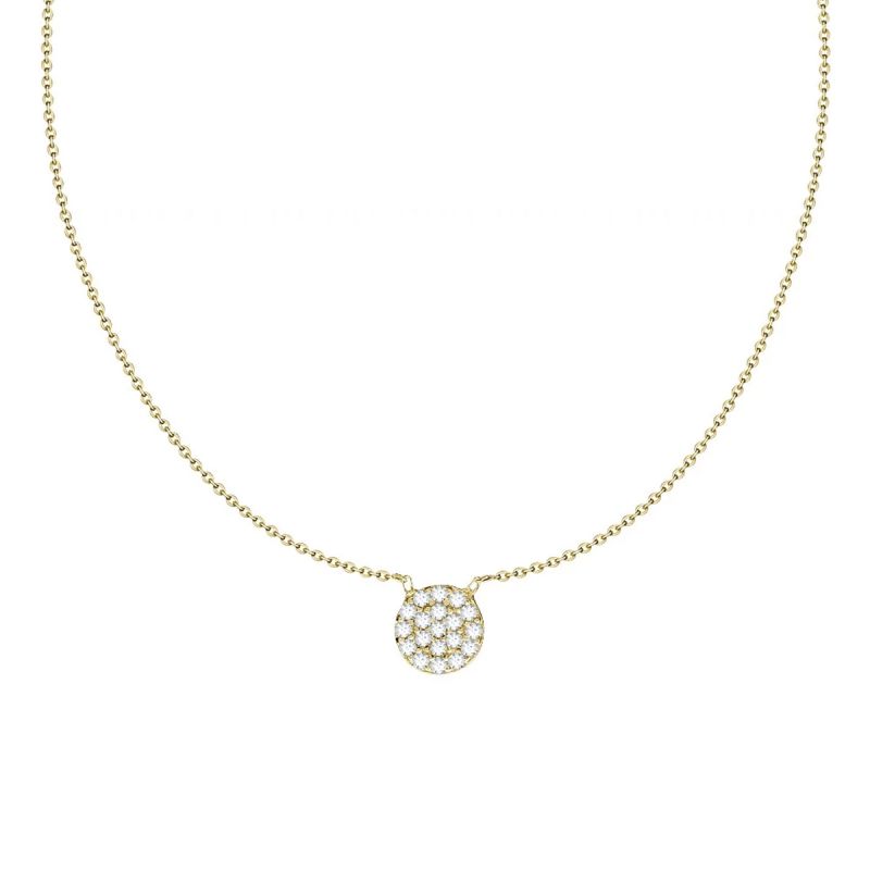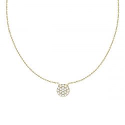 Élégant et lumineux, le Collier Femme SCINTILL AGATHA apporte une touche de raffinement discret à toutes vos tenues. Confectionné en laiton plaqué or, il est orné d’un pendentif rond délicatement pavé d’oxydes de zirconium, qui captent la lumière et illuminent votre décolleté avec subtilité.
