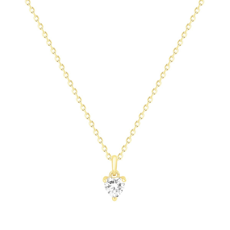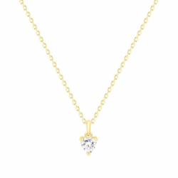 Le pendentif est réalisé en plaqué or, assurant une finition durable et une teinte chaude et luxueuse. Il présente un oxyde de zirconium unique taillé en forme de cœur, solidement maintenu par un serti à griffes. La pierre est suspendue à une chaîne fine, dont la longueur est ajustable de 42 à 45 cm, grâce à une chaînette de rallonge pratique.