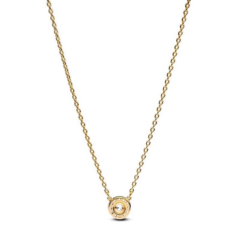Faites rayonner votre style avec ce collier Pandora Timeless, où l’éclat intemporel rencontre l’élégance moderne. Doré à l’or 585/1000e, il est orné d’un pendentif fixe composé d’un halo pavé d’oxydes de zirconium entourant une pierre centrale imposante, pour une profondeur visuelle et une brillance spectaculaires.