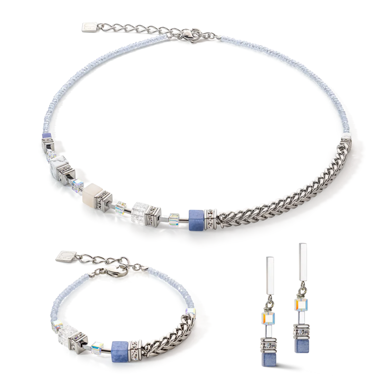 Composition : Swarovski® Crystals, aventurine bleu, cristal de roche, aventurine rosée, howlite, rondelles de strass, verre taillé