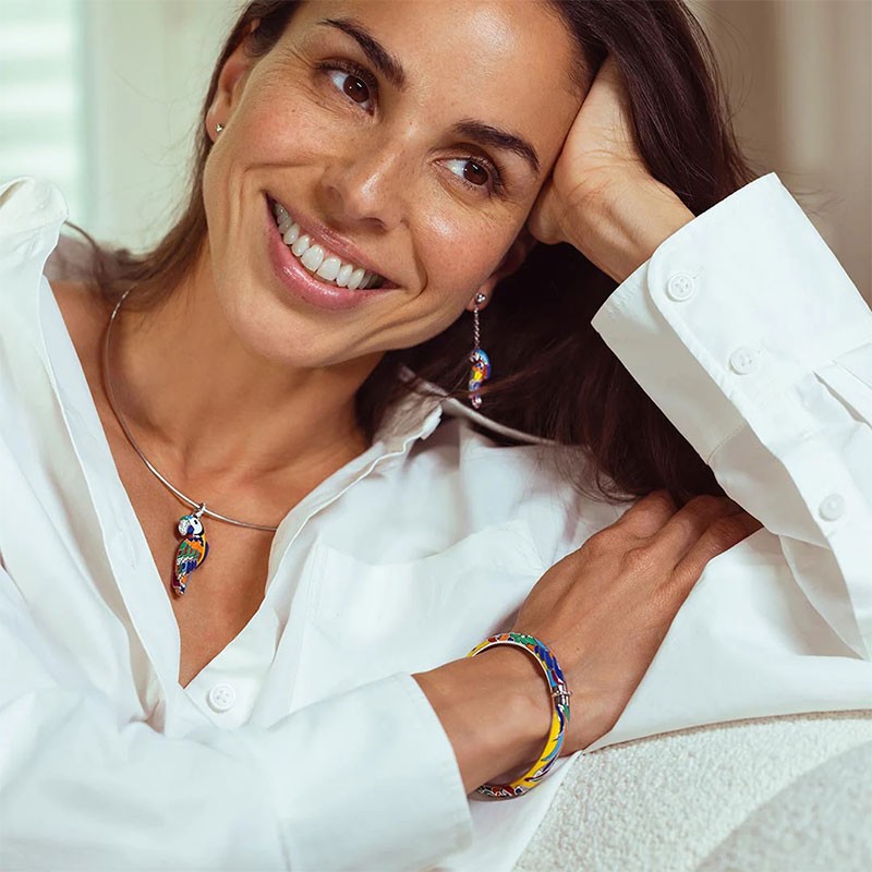 Succombez au charme tropical du pendentif UNA STORIA LOVEBIRD, une création inspirée par l’exotisme vibrant des oiseaux multicolores. Forgé en argent 925/1000 rhodié, ce bijou séduit par sa silhouette élégante et ludique, représentant un perroquet stylisé sublimé de laques multicolores. Chaque détail est minutieusement travaillé à la main pour donner vie à une pièce pleine de caractère, à la fois raffinée et joyeuse.