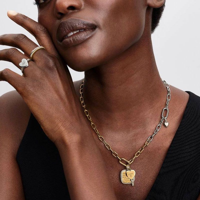 Polyvalent et chic, ce modèle est idéal pour agrémenter vos chaînes préférées et est compatible avec les collections Pandora Moments et Pandora ME. Sa hauteur de 22 mm en fait un accessoire de caractère qui souligne avec élégance votre décolleté. Chaque pièce bénéficie d'une finition à la main par des bijoutiers d'exception, garantissant une qualité irréprochable.