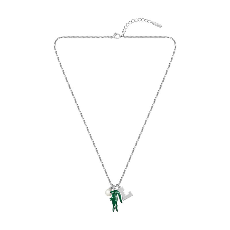 Le Collier Homme LACOSTE Acier Argenté 2040453 incarne l’audace et la modernité avec une élégance discrète. Confectionné en acier inoxydable argenté, il se distingue par un pendentif original alliant le célèbre crocodile Lacoste, une perle brillante et un “L” graphique, symbole fort de la marque.