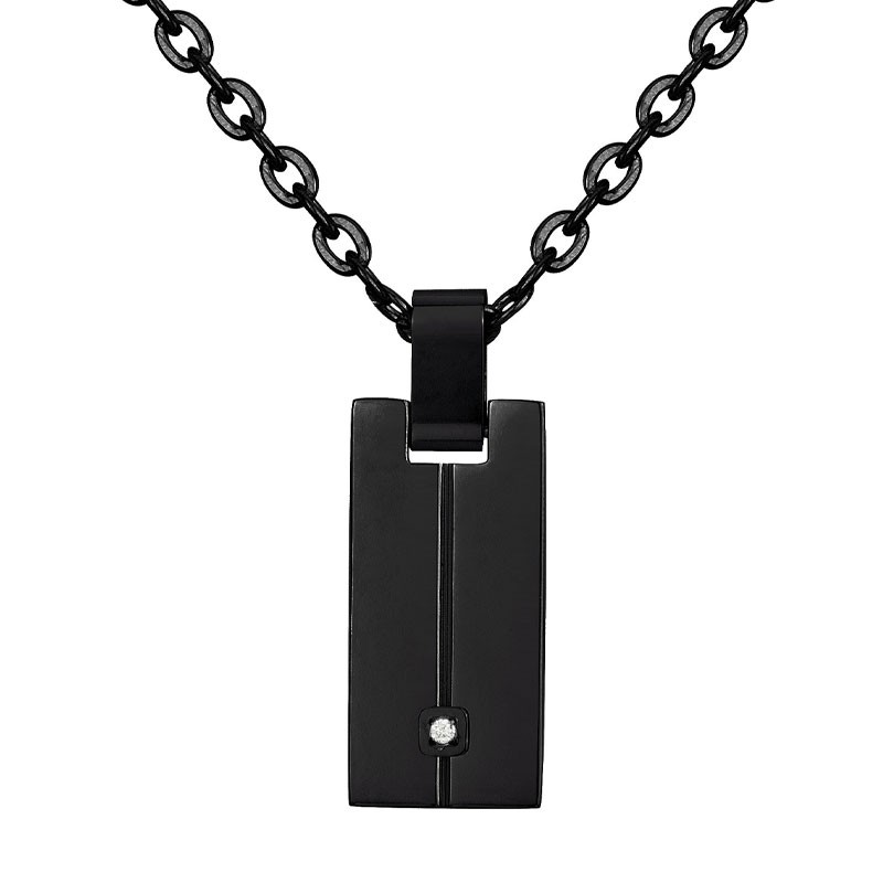 La préciosité de cette création PHEBUS réside dans la présence d'un authentique diamant de 0,015 carat, serti avec une précision joaillière exemplaire au cœur du pendentif rectangulaire noir. Cette pierre naturelle, symbole de pureté et d'éternité, illumine dramatiquement le collier en créant un contraste saisissant avec l'intensité du métal noir, confirmant son statut de bijou d'exception. L'acier noir conserve son éclat profond et sa résistance dans le temps, garantissant une durabilité remarquable à cette pièce d'orfèvrerie moderne qui traverse les époques avec caractère.