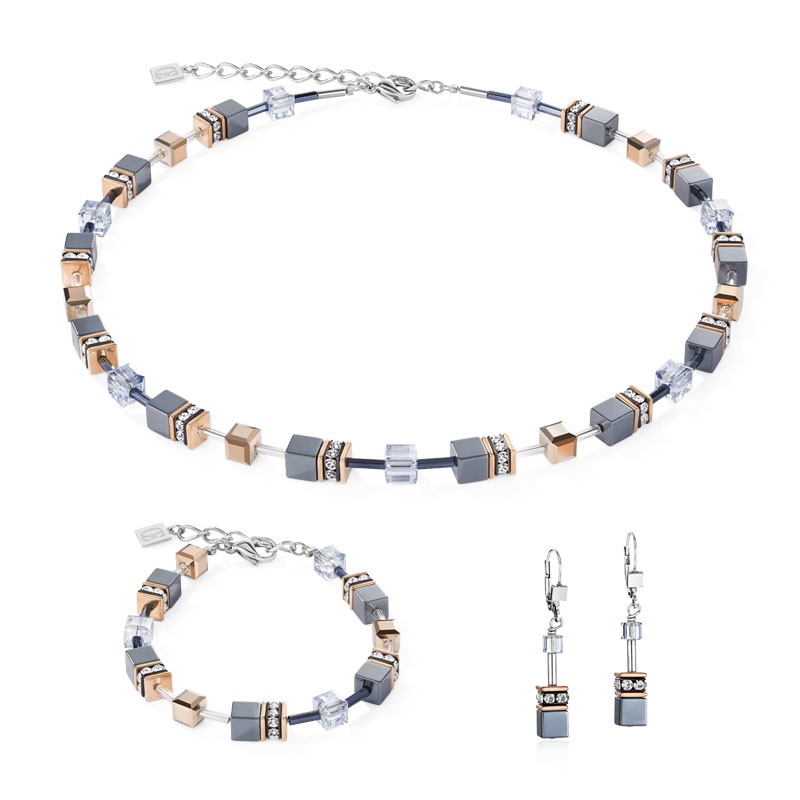 Ce collier GeoCUBE® est un chef-d'œuvre de simplicité géométrique, un classique intemporel de la célèbre collection de Cœur de Lion. Il se distingue par son association moderne de cubes dans des tons de bleu glacier, gris anthracite et or rose.