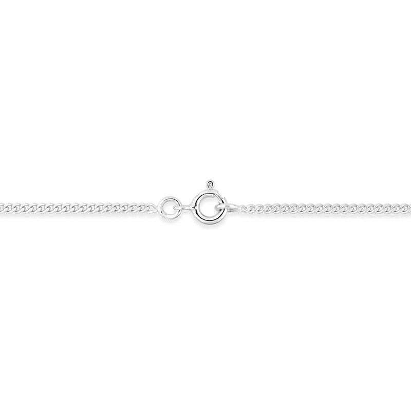 Cette chaîne est réalisée en or blanc 375 millièmes (9 carats), garantissant une qualité précieuse et une teinte métallique pure. Sa maille gourmette est d'une épaisseur notable de 1,70 mm (largeur de 1,8 mm), ce qui lui confère une robustesse et une brillance maximales. La chaîne bénéficie d'une finition diamantée, un traitement qui sculpte l'or pour optimiser sa réflexion de la lumière.