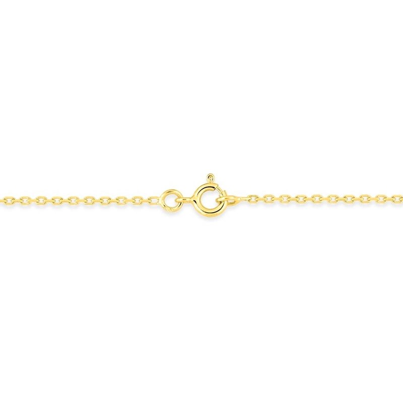 Ce collier est réalisé en or jaune 375 millièmes (9 carats), garantissant une qualité précieuse et une teinte dorée riche. Sa maille forçat, d'une largeur de 1,45 mm, lui confère une présence plus affirmée, idéale pour les pendentifs plus imposants ou pour être portée seule. Le bijou bénéficie d'une finition diamantée, un traitement qui sculpte l'or pour optimiser sa réflexion de la lumière, assurant un scintillement continu et captivant.