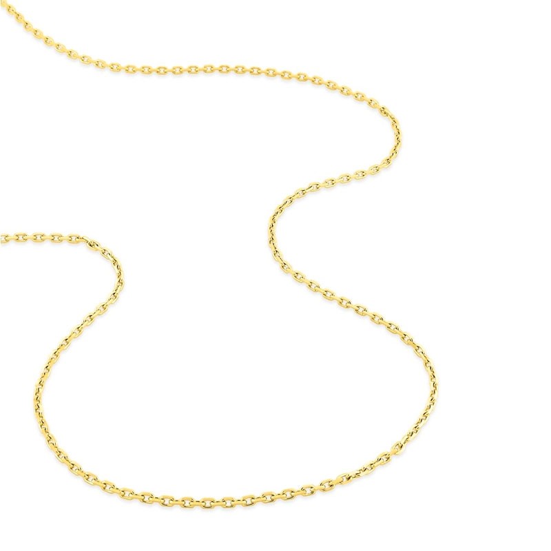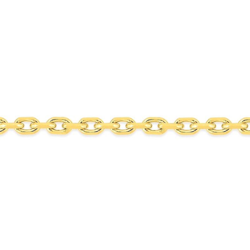 Ce bijou est réalisé en or jaune 375 millièmes (9 carats), garantissant une qualité précieuse et une teinte dorée riche. Sa maille forçat est d'une épaisseur de 1,85 mm, ce qui lui confère une présence substantielle et une robustesse idéale pour un usage fréquent. La chaîne bénéficie d'une finition diamantée, un traitement qui sculpte l'or pour optimiser sa réflexion de la lumière, assurant un scintillement continu et captivant.
