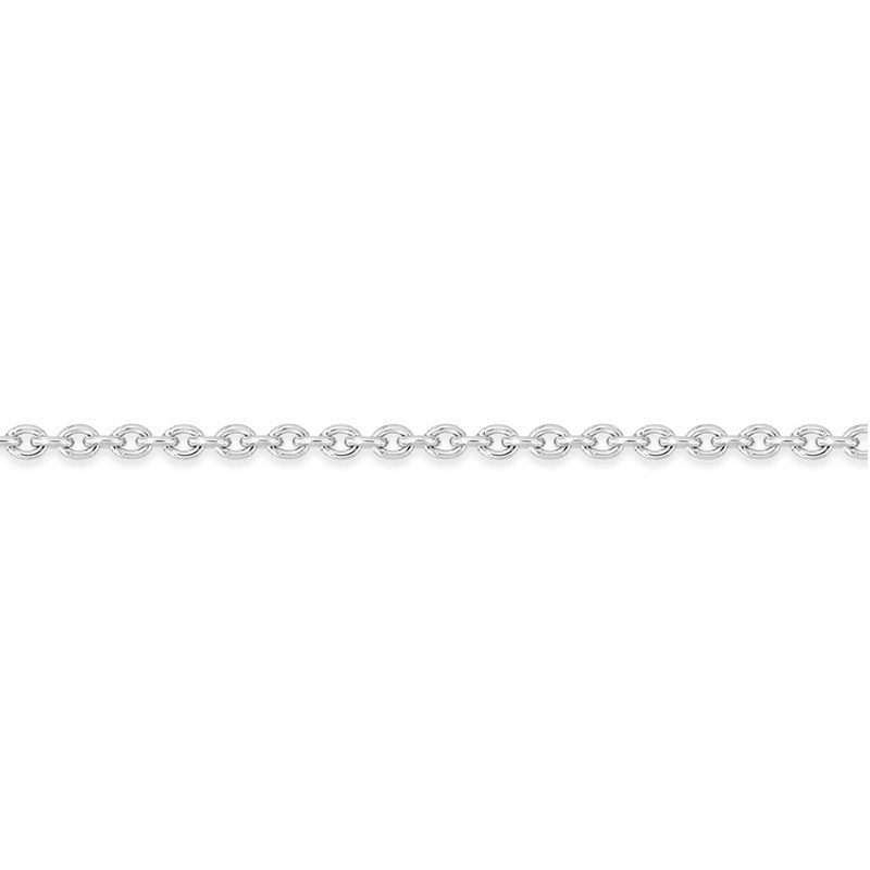 Cette chaîne est réalisée en or blanc 375 millièmes (9 carats) et est rhodiée, lui conférant une teinte précieuse et métallique. Le maillon de type forçat rond, d'une largeur de 0,90 mm, offre une texture lisse et une brillance classique qui s'adapte à tous les styles.